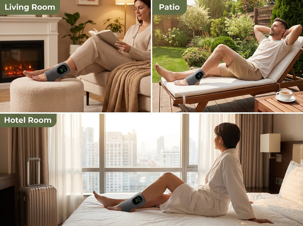Answer 3: The device is cordless and rechargeable, allowing for up to three soothing sessions on a single charge. Its portable design makes it easy to use anywhere, whether at home, in the office, or while traveling.